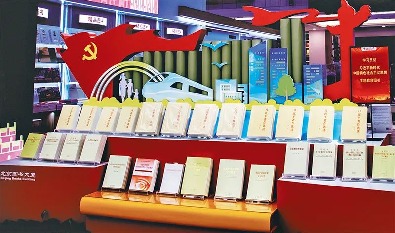 随着强国建设、民族复兴伟业的推进,习近平新时代中国特色社会主义思想不断丰富拓展并不断体系化学理化,构成一个逻辑严密、内涵丰富、系统全面、博大精深的科学体系,实现了马克思主义中国化时代化新的飞跃。图为2023年10月12日在北京图书大厦拍摄的学习贯彻习近平新时代中国特色社会主义思想主题教育图书专区。 刘新武/摄